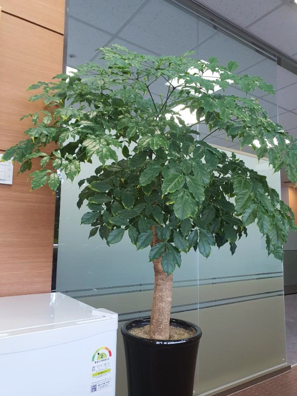 해피트리는 직사광선과 완전한 음지를 제외한 곳에 놓아주면 좋아요. 직사광선이 닿으면 잎이 까맣게 타 들어가는 현상이 발생할수 있습니다.