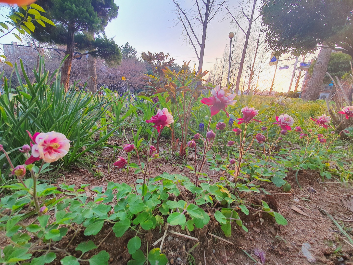 봄꽃들이 정신없이 줄지어 피고 있습니다. 점심 식사 후 잠깐만 둘러봐도 여기저기 꽃과 나무들의 새싹을 볼 수 있습니다. 오늘은 이 녀석이 매발톱 꽃입니다.