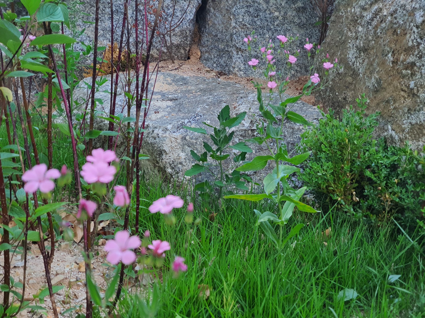 산책길에 만나 말 뱅이 나물 꽃입니다. 분홍 안개꽃 또는 사포나리아, 개장 구채, 들 장구채, 쇠 나물, 개장 고채라고 부르기도 합니다. 꽃이 예뻐서 한 참 쳐다보다 사진을 찍었습니다. 첫 느낌이 야생화인 듯하면서도 화원을 뛰쳐나온 아이 같은 느낌입니다.