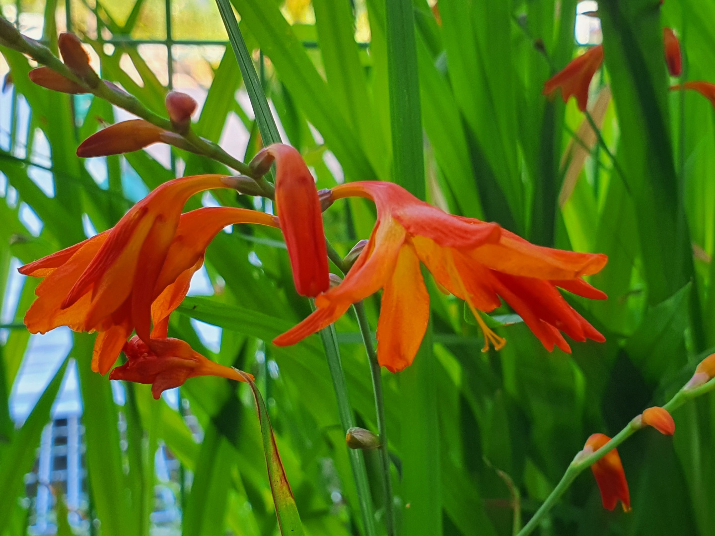 우리나라에서는 애기범부채라 부르는 몬트 부레 치아는 다년생 구근식물입니다. 3~4월 심으면 6월~8월 중순까지 꽃을 볼 수 있는 여름꽃입니다. 색깔도 빨간색, 주황색, 노란색 등 여러 품종이 있습니다.