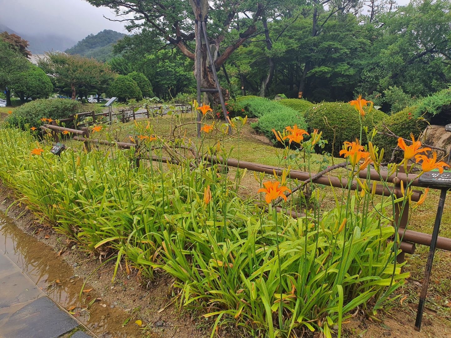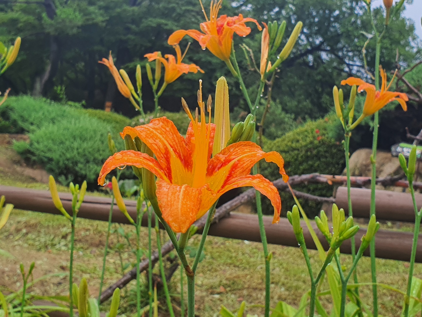 비를 맞고 있는 꽃들에게 다가가니 참나리라는 이름표를 달고 있습니다. 백합처럼 생겼는데 왜 참나리일까? 백합, 나리, 참나리 좀 헷갈립니다. 같은 듯하면서 좀 자세히 보면 조금씩 다르게 보입니다. 내가 알고 있는 점박이 참나리와 달라서 더 헷갈립니다.
