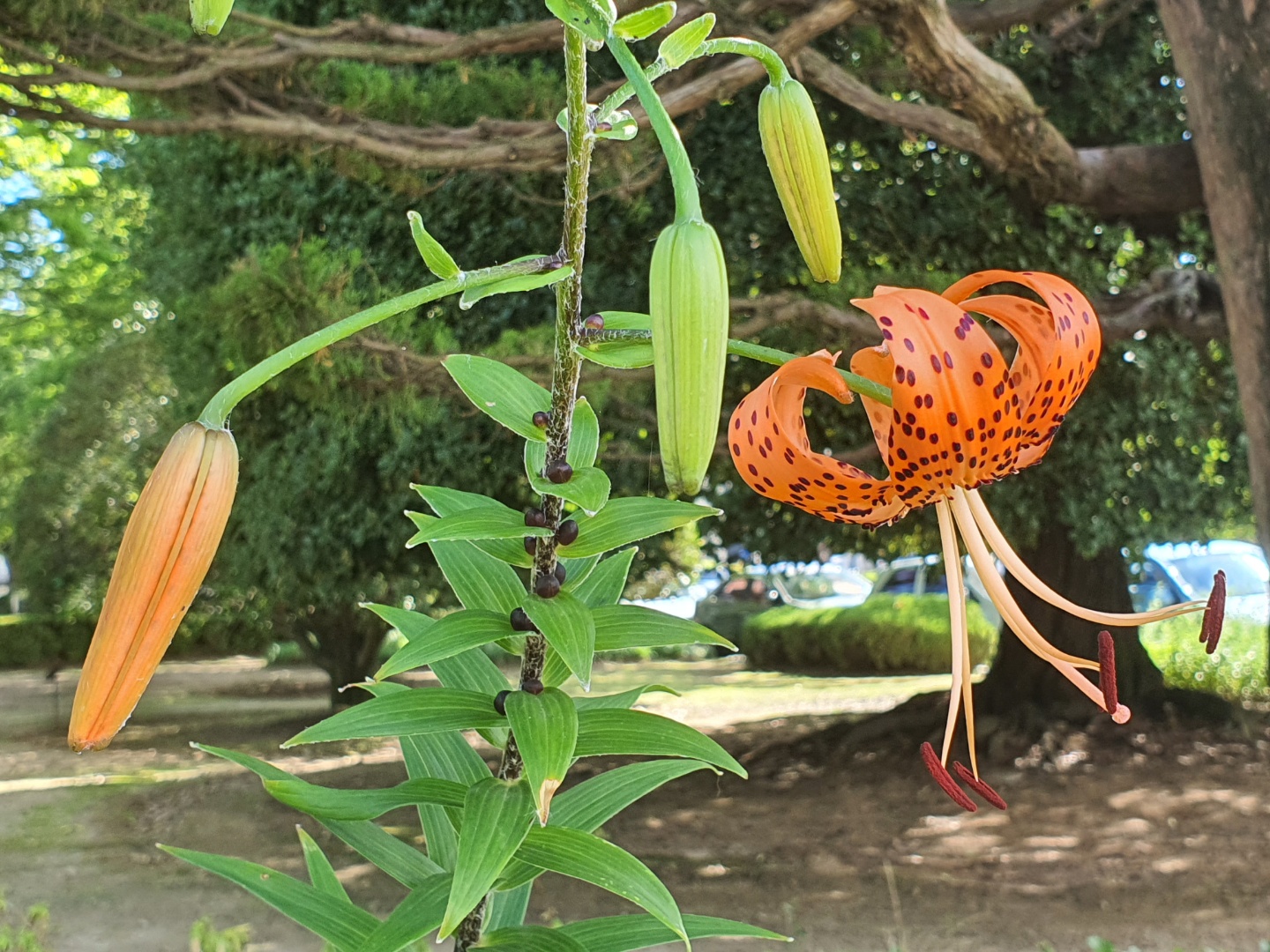 뿌리를 파보면 알뿌리가 있는데 강장제나 진해제로도 사용된다고 합니다. 참나리는 알뿌리로 번식하는 것이 아닌 주아로 번식하는 독특한 식물입니다. 꽃이 열매를 맺지만 씨앗을 맺지 못합니다.