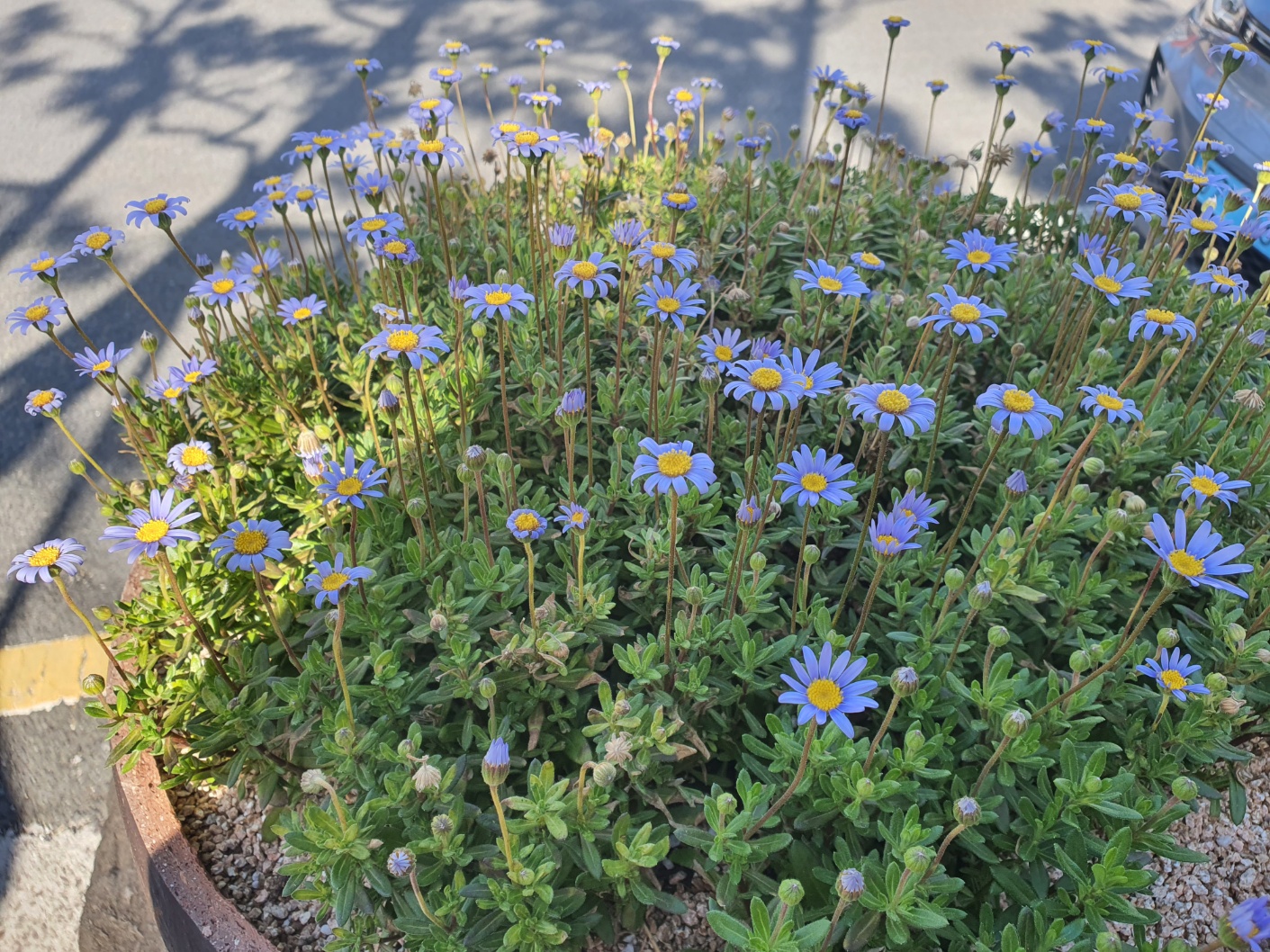 블루데이지는 국화과의 여러해살이 풀로 꽃이 데이지와 비슷해 블루 데이지로 불립니다. 아프리카 남부가 원산지로 해안가 바위틈이나 모래 평원, 자갈이 깔린 경사면, 현무암 절벽에서 자랍니다. 블루데이지는 청화국, 푸른마가렛, 페르시아국화 등으로 불리기도 합니다.