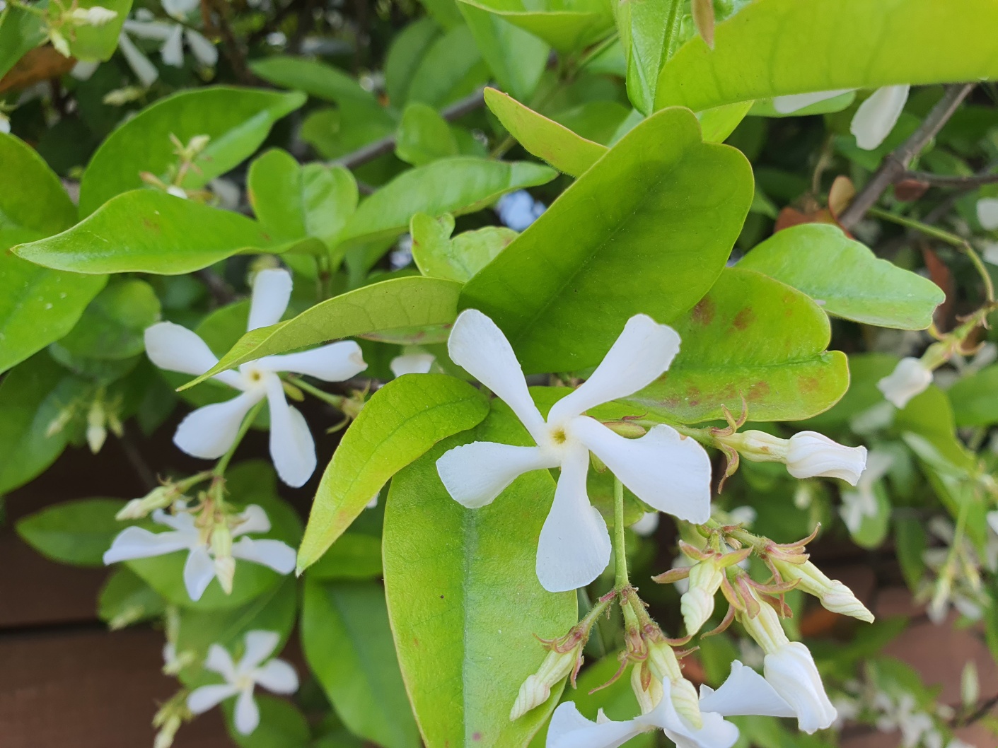 '매혹', 하얀웃음, 속삭임 등의 꽃말을 가지고 있습니다. 꽃의 모양이 바람개비를 닮아 귀엽고 가까이 다가가면 자스민 향기로 당신을 메혹시키는 백화등입니다.
