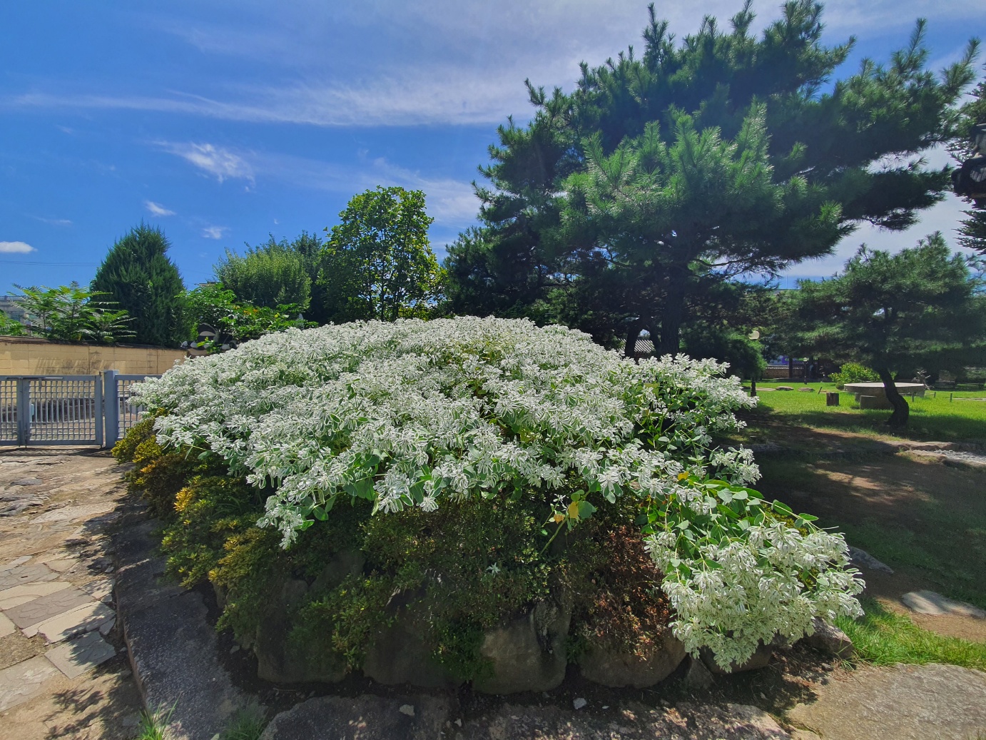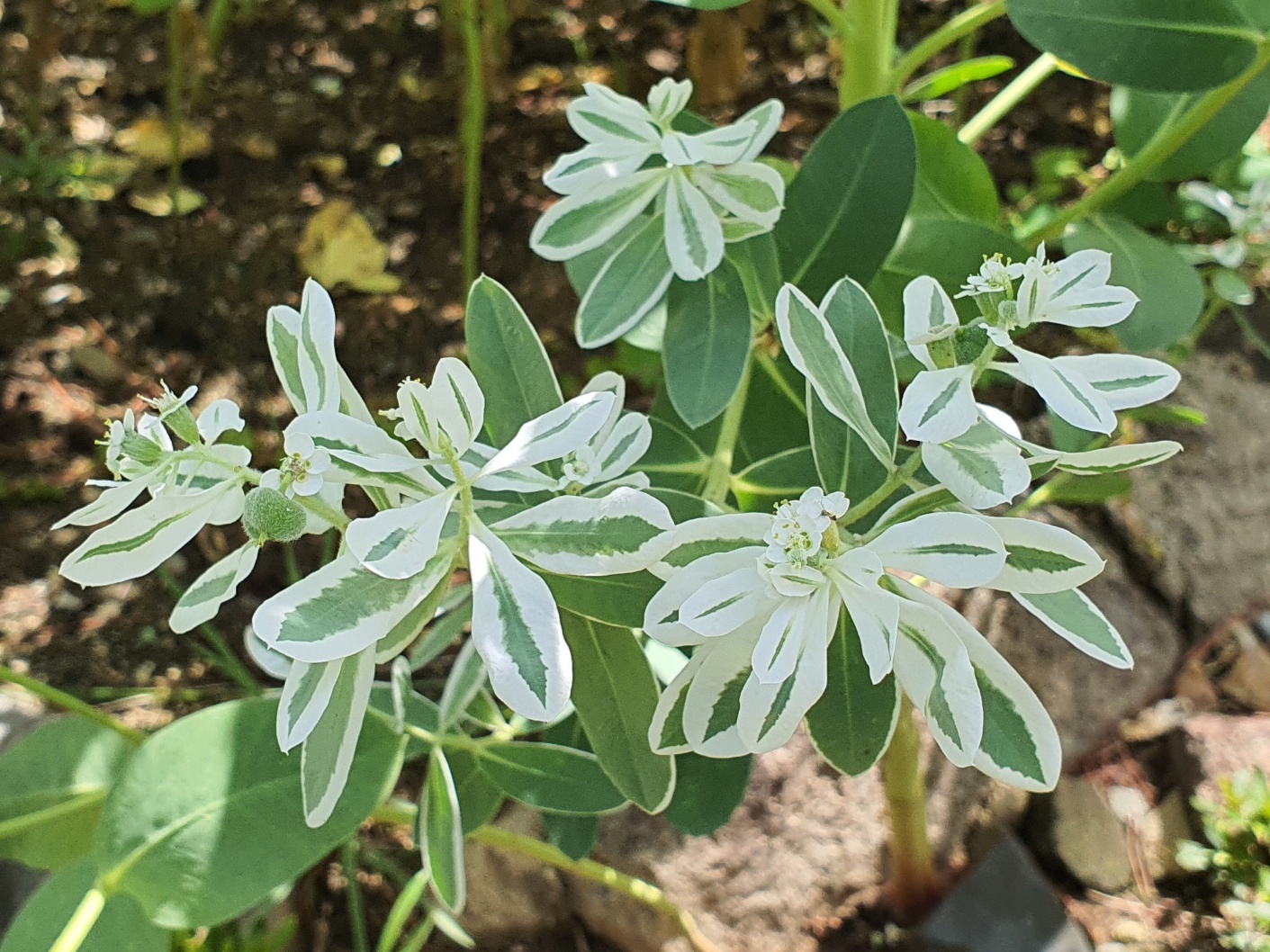 설악초는 북아메리카가 원산지인 대극과의 식물입니다. 위쪽의 하얀잎이 눈이 내린 것처럼 보여 설악초라고 합니다. 또 달이 잇는 밤에는 야광처럼 빛난다 하여 야광초라고 부르기도 합니다. 자세히 보면 꽃은 아주 작습니다. 멀리서 보면 하얀 잎이 꽃처럼 보여 하얀 꽃이 풍성하게 펴 있는 것처럼 보입니다.