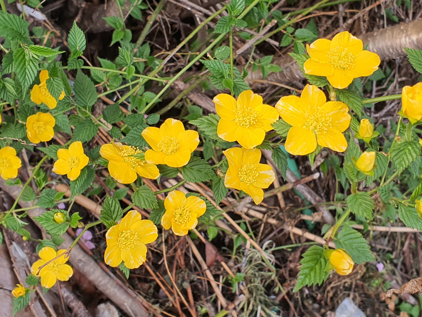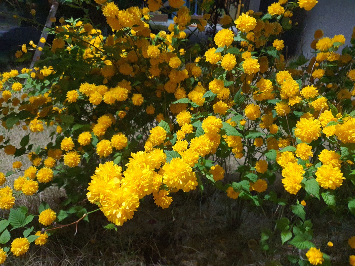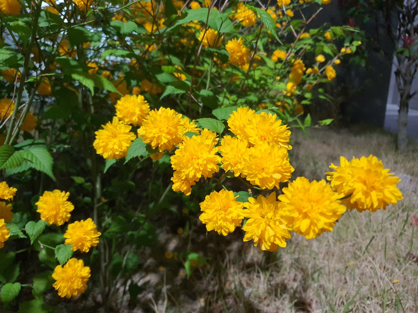 죽도화(죽단화)는 겹황매화라고 불리기도 하는데 일본이 원산지로 황매화의 변종이라 합니다. 동글동글 공모양으로 만져보고 싶게 합니다. 만져보면 부드럽고 폭신폭신한 느낌이 듭니다. 황매화, 죽단화 둘 다 4월에서 5월에 피는 꽃이지만 굳이 비교를 한다면 황매화가 조금 더 일찍 꽃이 핍니다. 황매화는 초가을에 열매가 익고 죽단화는 열매가 없습니다.