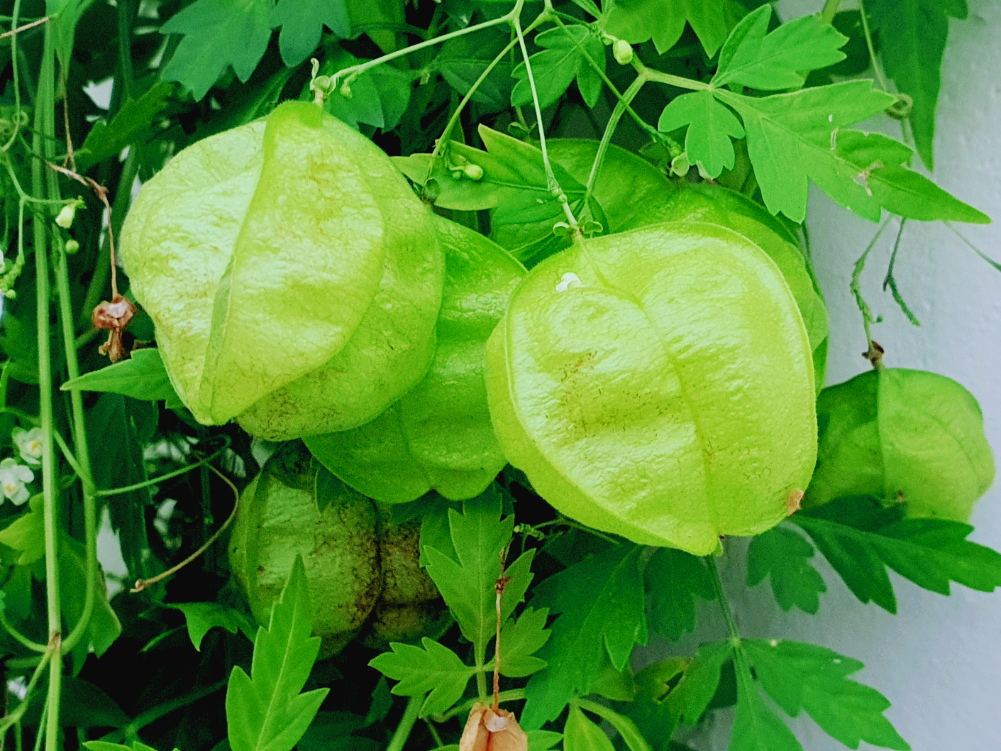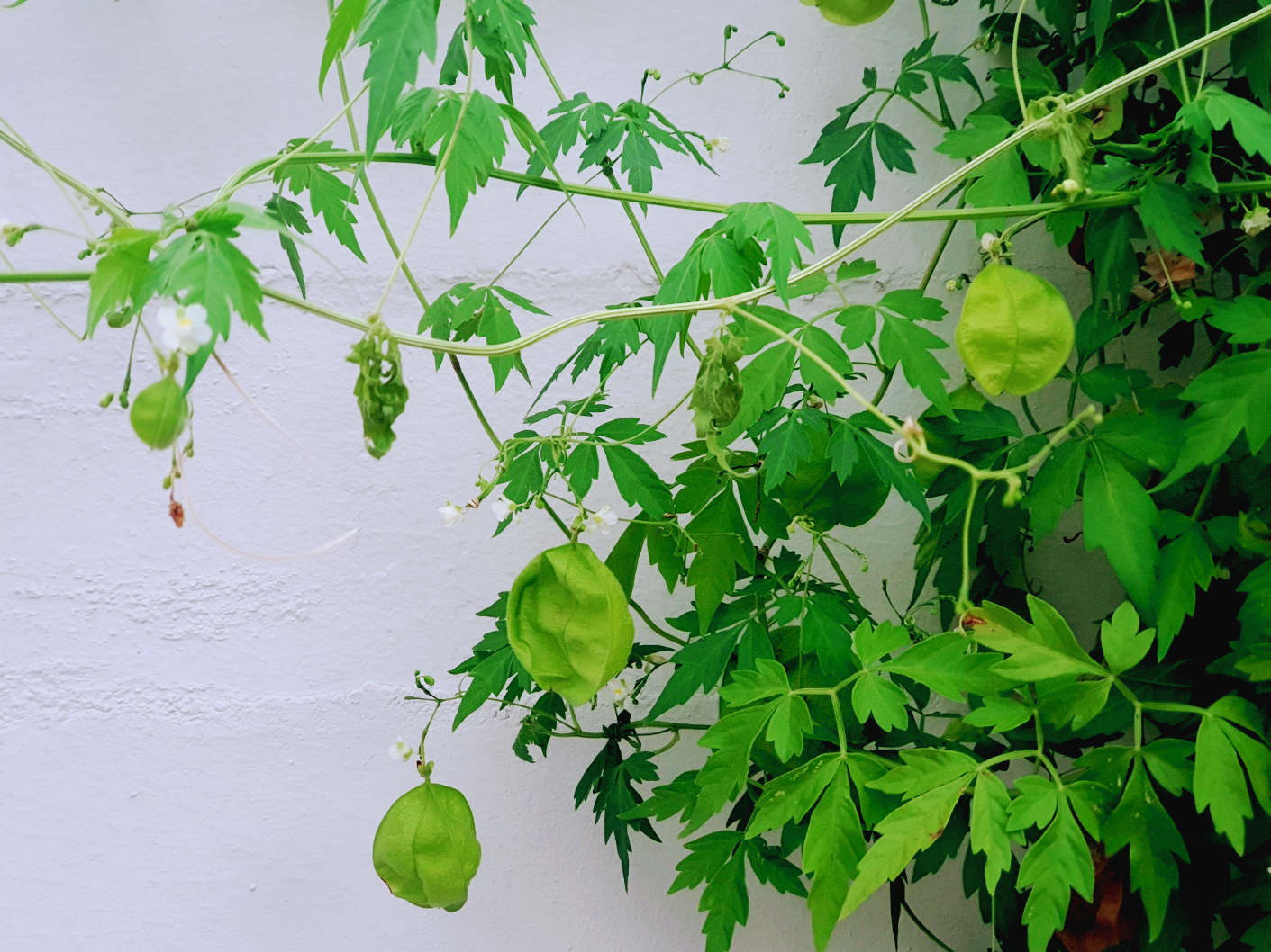 풍선덩굴은 생명력이 강한 편입니다. 물빠짐이 좋은 흙과 적당한 햇빛이 있으면 어디서든 잘 자랍니다. 특히 너무 강한 직사광선은 피하는 것이 좋아 햇빛이 충분치 않은 실내 반그늘에서도 키울 수 있어 더 좋은 것 같습니다. 동글동글한 귀여운 열매를 볼 수 있습니다.