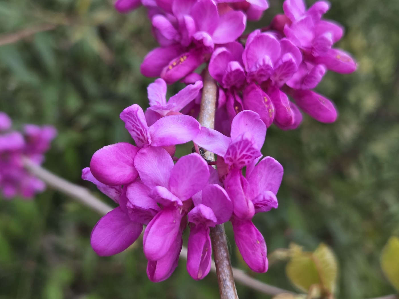진달래 보다 조금 더 짙은 분홍색을 가진 박대기 나무 꽃입니다. 아주 작은 꽃들이 다닥다닥 붙어 있는데 밥알 모양과 비슷해 박태기 나라무 부르고, 일부 지방에서는 밥티나무라고도 부릅니다. 그리스어로 Cercis 즉, 칼처럼 생긴 꼬투리가 달린다 해서 칼집나무라 부르기도 하고, 예수를 배반한 유다가 이나무에 목매어 죽어 유다 나무라고도 합니다.