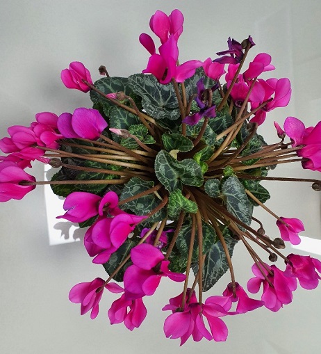요즘은 인터넷으로 식물을 구입하는 사람도 많지만 전 여전히 화원에서 식물들을 데려 오고 있습니다. 겨울하면 흔히 볼수 있는 꽃이 시클라멘입니다. 가격도 저렴하고 색상도 화려해 전체적인 분위기를 밝게 하는 역할을 합니다. 하지만 아지자기하고 소박한 야생화 스타일을 선호하는 사람들에게는 익숙하지 않을 수도 있습니다. 예전에 선물로 받았을때 꽃이 상당히 오래가고 잘자랐던 기억이 있어 구입했습니다.