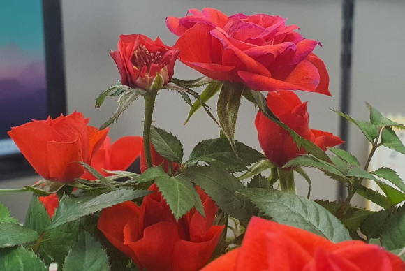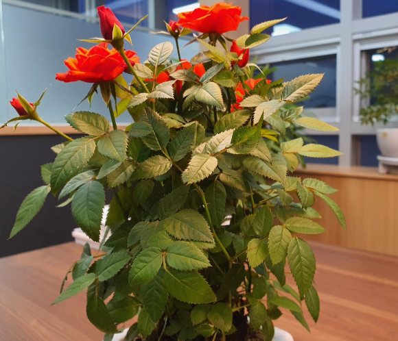 장미좋아하는 분들 많은데요. 5월까지는 너무 많이 남아서 미니장미화분을 샀습니다. 꽃을 보고 '예쁘다'하는 마음 갖게 하고 잠깐이라도 좋은 생각을 떠올렸으면 하는 바램입니다. 요즘 다들 코로나때문에 스트레스를 많이 받고 있는데 식물이 작은 위안을 주며 좋겠습니다. 미니장미는 꽃을 작게 개량한 품종으로 연중 꽃을 피우며, 꽃말은 끝없는 사랑입니다.