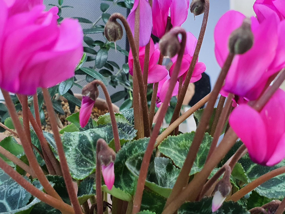 보통 사무실에서 꽃화분을 키우면 2주 정도는 예쁘게 피어있습니다. 2주 쯤 지나고 나면 조금씩 꽃이 지거나 모양이 흐트러집니다. 이때 햇빛이 잘 들어오는 창가에 두면 봉오리를 맺고 있던 꽃들이 다시 피어나 조금더 풍성해집니다. 지난해 12월30일 6,000원에 구입한 시클라멘이 아직도 꽃을 피우며 건강하게 잘 살아있습니다.