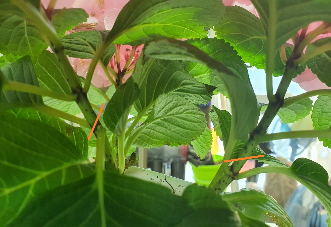 세송이중 한송이는 수국이 지는 중이고 두송이는 아직 건강하게 잘 있습니다. 꽃이 지고 꽃대를 자르면 원줄기에서 양옆으로 잎이 나고 땅속에 묻혀 있던 새순들이 나오기도 합니다. 세송이 중 먼저 지는 한송이만 물꽂이를 먼저 할 생각입니다.