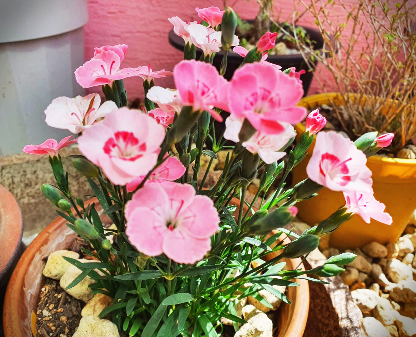 카네이션은 10~20도 정도 되는 선선한 날씨를 좋아합니다. 25도 이상 더운 날씨는 잎이 축축 처지고 물러지니 여름에는 너무 덥지 않은 곳에서 키우는 것이 중요합니다.