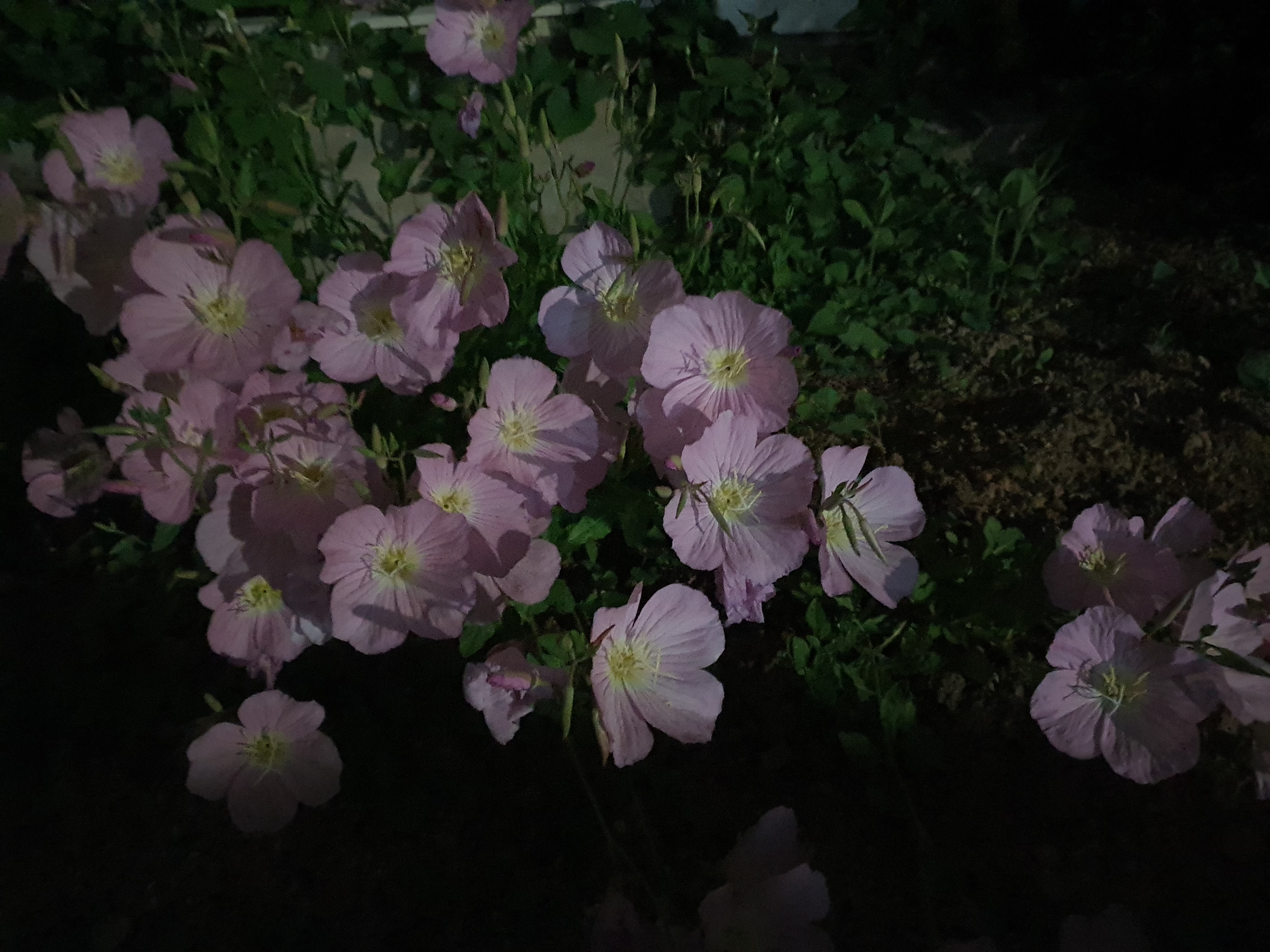 혹시나 밤이 되면 꽃잎이 오므라들었다 낮에 다시 활짝 피는 건 아닐까 상상해봅니다. 그래서 밤에 분홍 낮달맞이꽃을 찾아가 봤습니다. 아쉽게도 꽃이 활짝 펴 있습니다. 밤에 오므라들었다 낮에 다시 활짝 피면 신비로울것 같습니다.