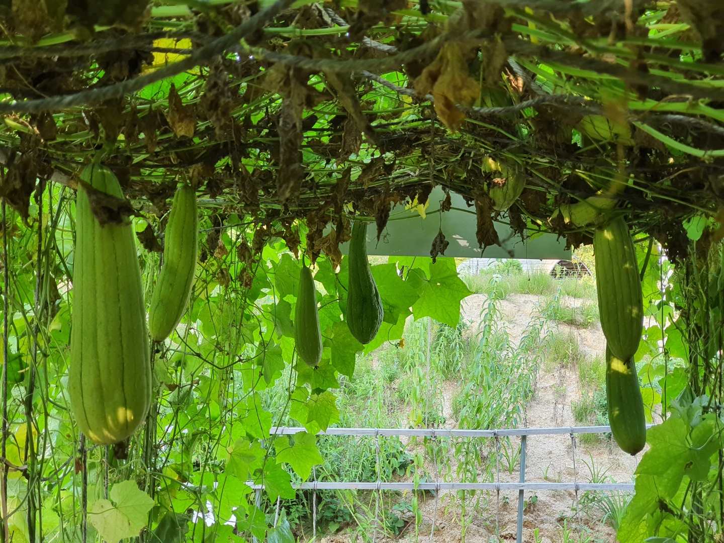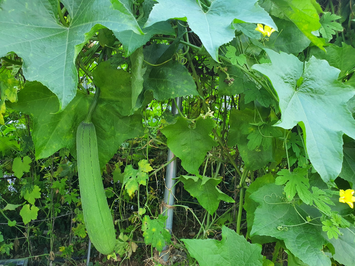 공원 한쪽에 오이같이 생겼지만 오이보다 크고 통통하고 길쭉한 덩굴식물들이 주렁주렁 달려 있어 궁금증을 불러일으킵니다. 네이버에 물어보니 수세미라고 합니다. 수세미는 주로 초여름에 파종을 하면 3~4개월 후 성숙한 생수 세미를 수확할 수 있습니다. 7월은 섬유질 조직이 단단하지 않고 부드러워 효소와 즙으로 많이 활용합니다. 천연 수세미로 사용하기 위해서는 섬유질 조직이 단단해지는 8월 말쯤이나 9월경에 수확해 손질하여 사용합니다.