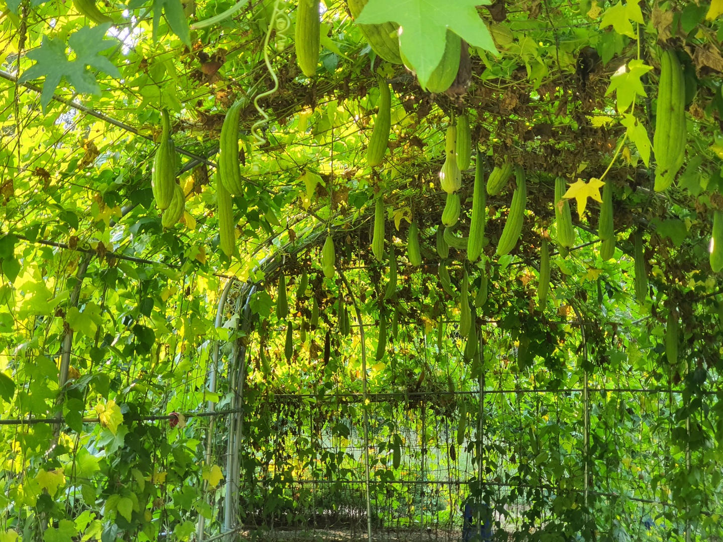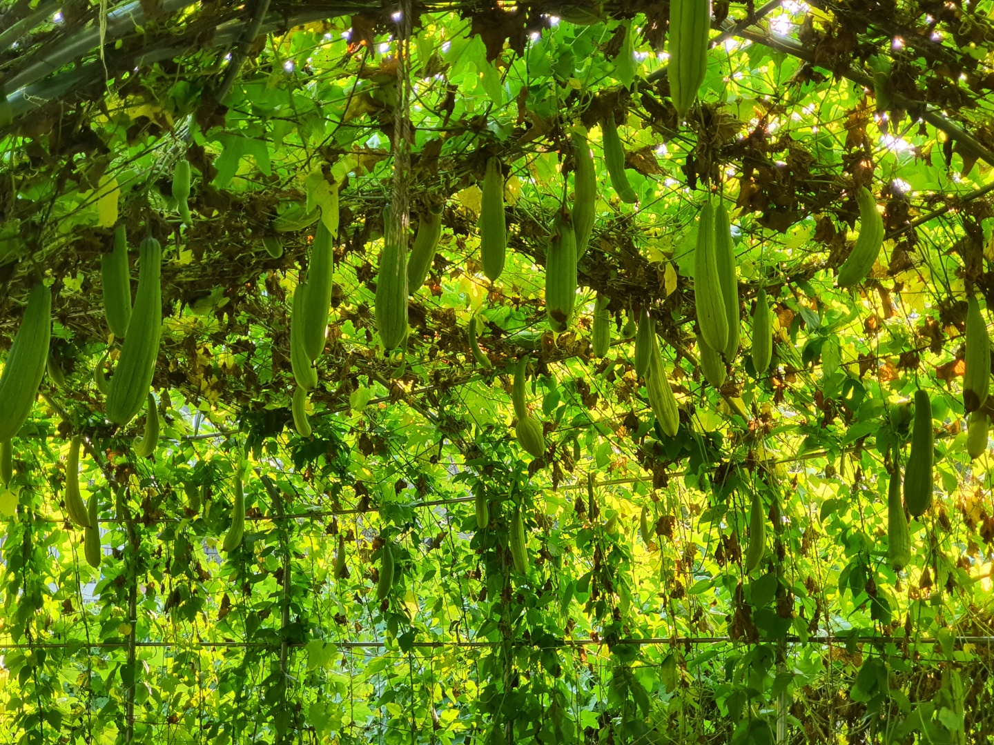 어린 수세미는 오이와 많이 닮았습니다. 다 자라면 누래지고 속에는 씨앗이 생겨 검게 여물고, 섬유질이 생깁니다. 옛날에는 그릇을 닦거나 목욕할 때 목욕 타월로 사용했다고 합니다.