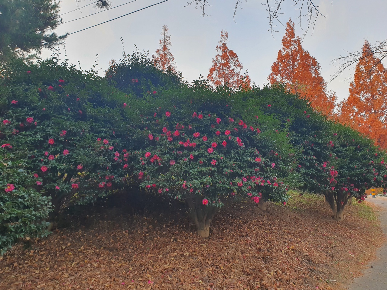 겨울철 동백꽃을 보기 위해 여행을 가지 않더라도 우리 주위 공원에서 동백나무가자라고 있을 수 있습니다. 산책길 주위를 잘 살펴보세요. 당신도 모르는 사이 동백꽃이 피고 있을지도 모릅니다.