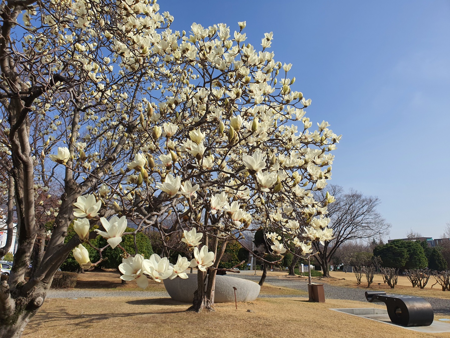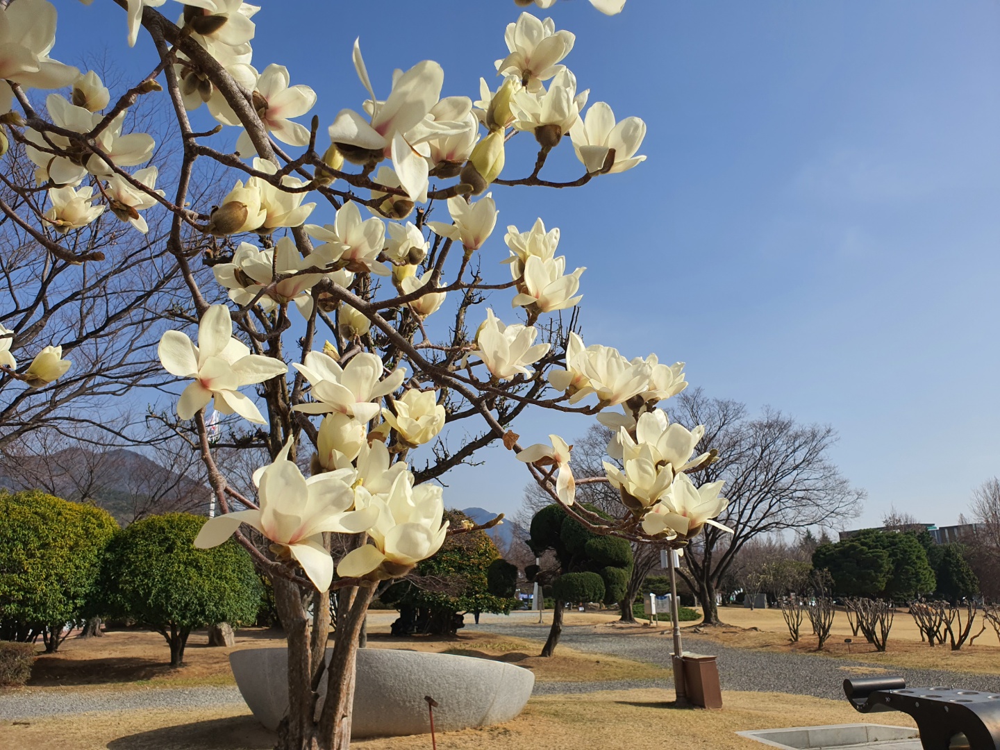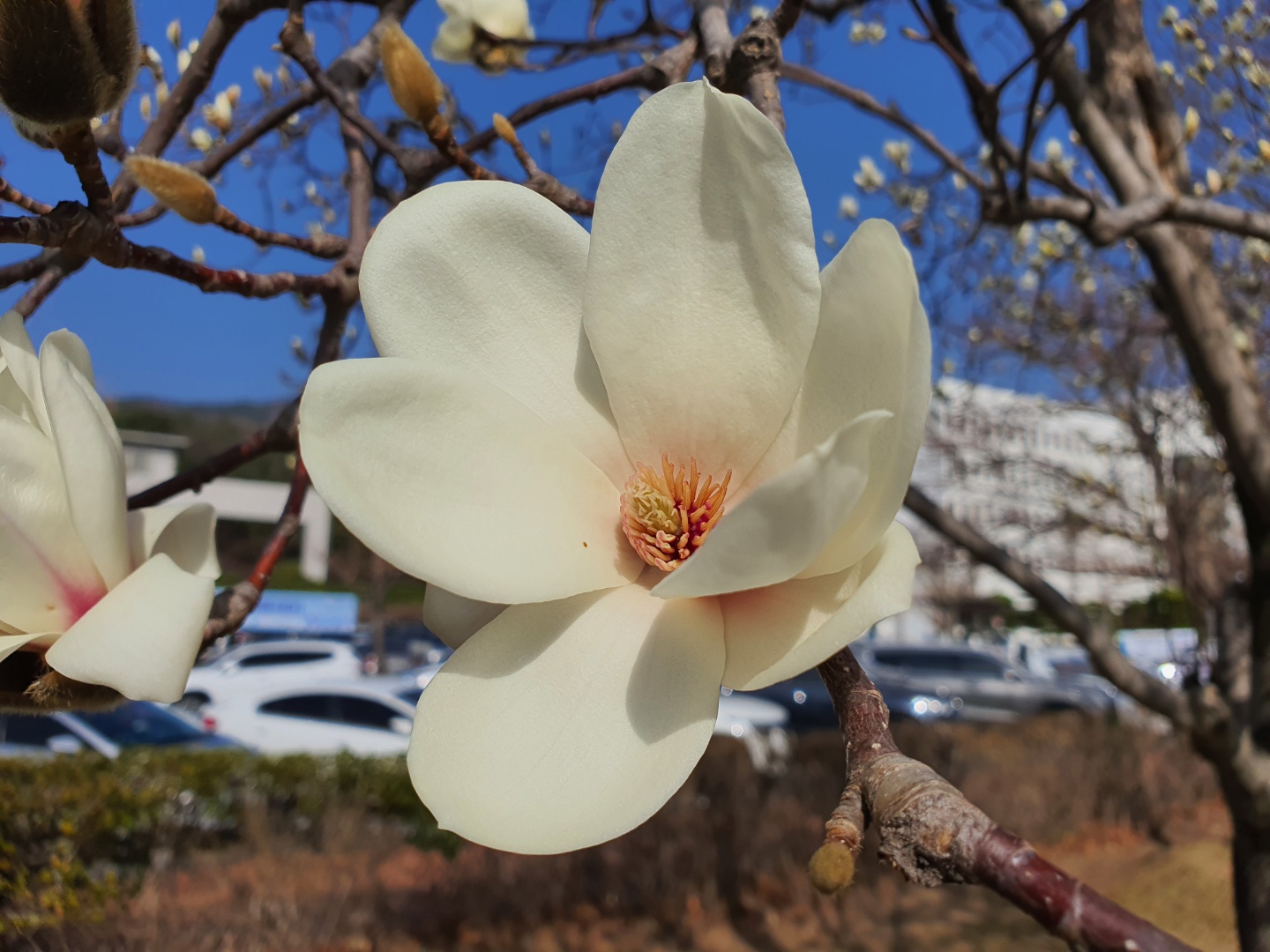 목련꽃에 어떤 추억을 갖고 계신가요? 흔히 볼 수 있고 이른 봄에 피지만 전 이 꽃과는 특별한 추억은 없습니다. 매화꽃 피고 며칠 후 목련 또 며칠 지나니 개나리가 피고 있습니다. 약간의 시차를 두고 거의 비슷한 시기에 꽃들이 피기 시작했습니다. 겨울 동안 미뤄둔 일을 하는 것처럼 한 동안 봄꽃들이 바쁘게 움직일 것 같습니다. 특히 햇빛이 잘 드는 곳에 있는 꽃들은 더욱 부지런히 봄맞이를 시작했습니다.